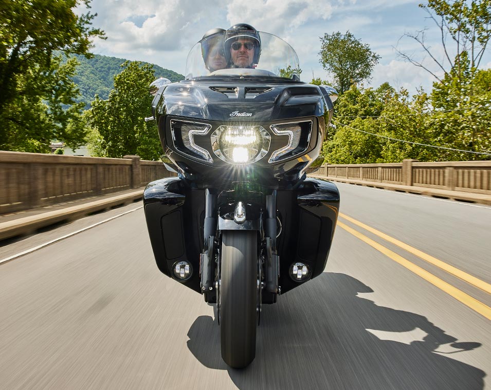 | Standard Equipment | Smart Lean Technology; Electronically Adjustable Rear Suspension Preload; Heated Seat; Integrated Driving Lights in Lower Fairing; Lower Fairing Storage; 7" touchscreen powered by Ride Command with Navigation and Apple CarPlay integration; Selectable Ride Modes; Rear Cylinder Deactivation; Cruise Control; Tyre Pressure Monitoring; Remote-locking Hard Saddlebags & Trunk; 136+ litres of Storage; Highway Bars; Adjustable Passenger Floorboards; Brembo brakes; ABS; Keyless Ignition; Chassis Mounted Fairing; Power Windshield; Adjustable Fairing Air Flow Vents; Heated Grips; 200 Watt Audio System with AM/FM, Bluetooth, USB, Smartphone Compatible Input, and Weatherband; 12V Charging Port |