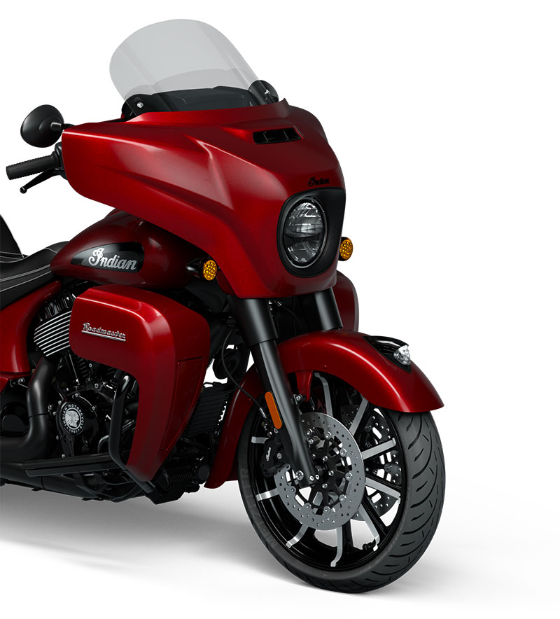 | Standard Equipment | 7" Touchscreen powered by RIDE COMMAND with Navigation and Apple CarPlay integration; Power Windshield; Highway Bars; Vinyl Rogue Seat; Tyre Pressure Monitoring; Remote-locking Hard Saddlebags; Selectable Ride Modes; Rear Cylinder Deactivation; ABS; Cruise Control; Keyless Ignition; 100 Watt Audio System with AM/FM, Bluetooth, USB, Smartphone Compatible Input, and Weatherband; 12V Charging Port |