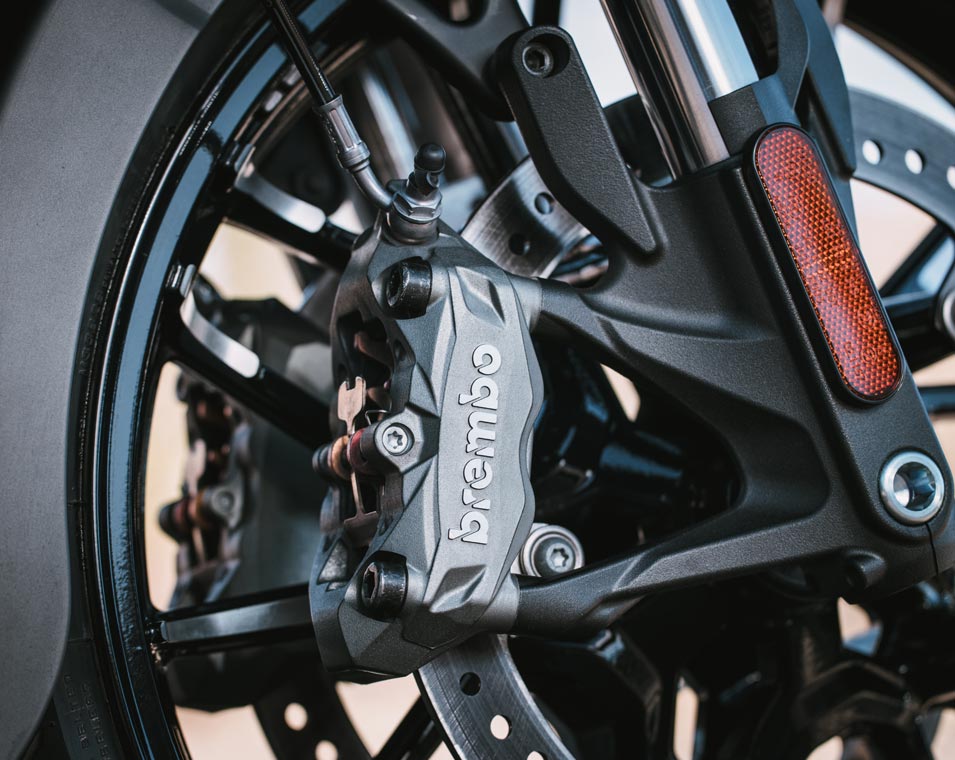 Brakes/Front Brembo® Callipers, Dual Semi-Floating Rotors: 320mm x 5.0mm