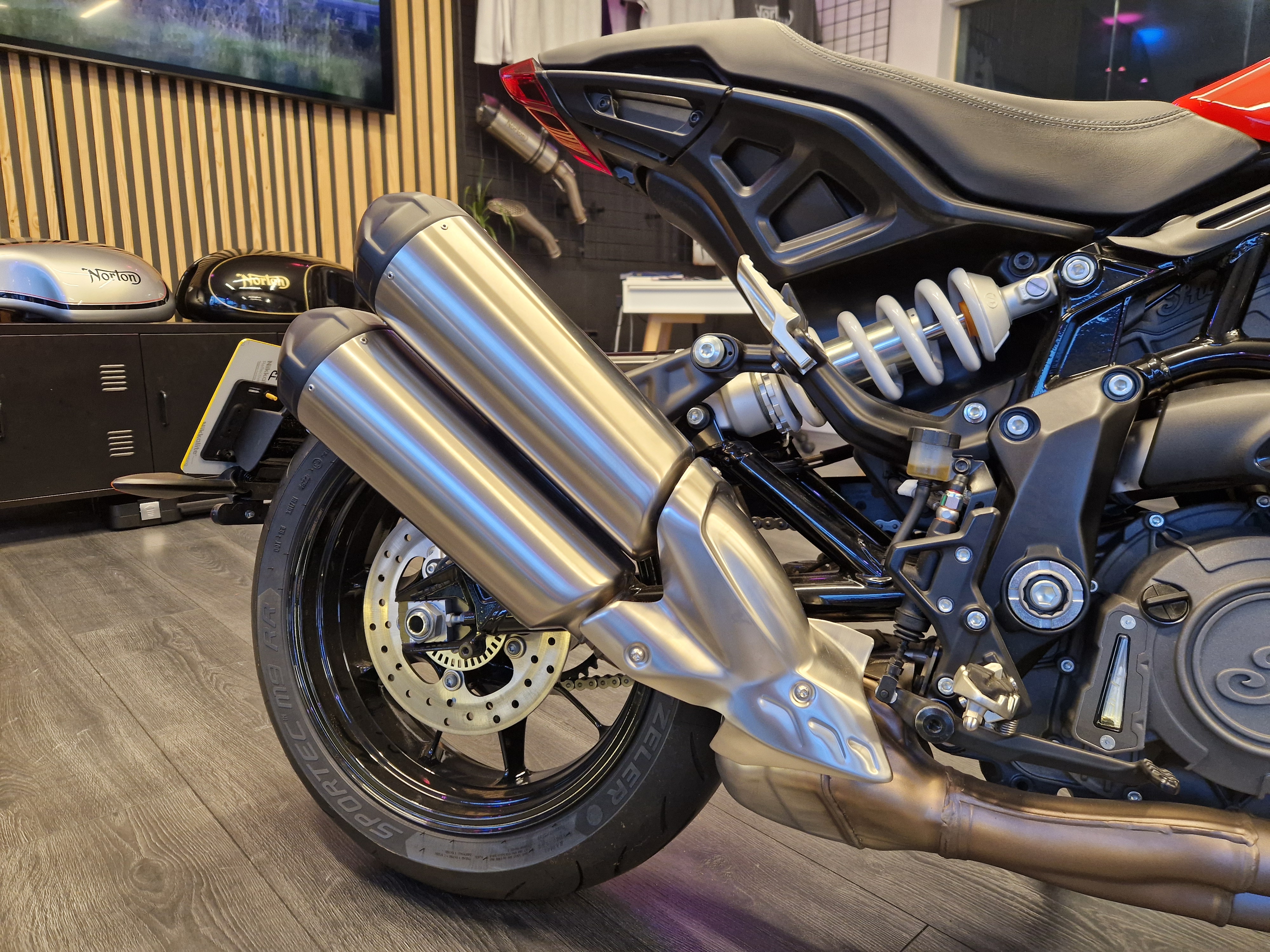 A one-owner bike finished in Indy Red/White with black detailing, and featuring Indians 1250cc liquid-cooled V-Twin producing 120 BHP, mated to a 6-speed manual transmission.